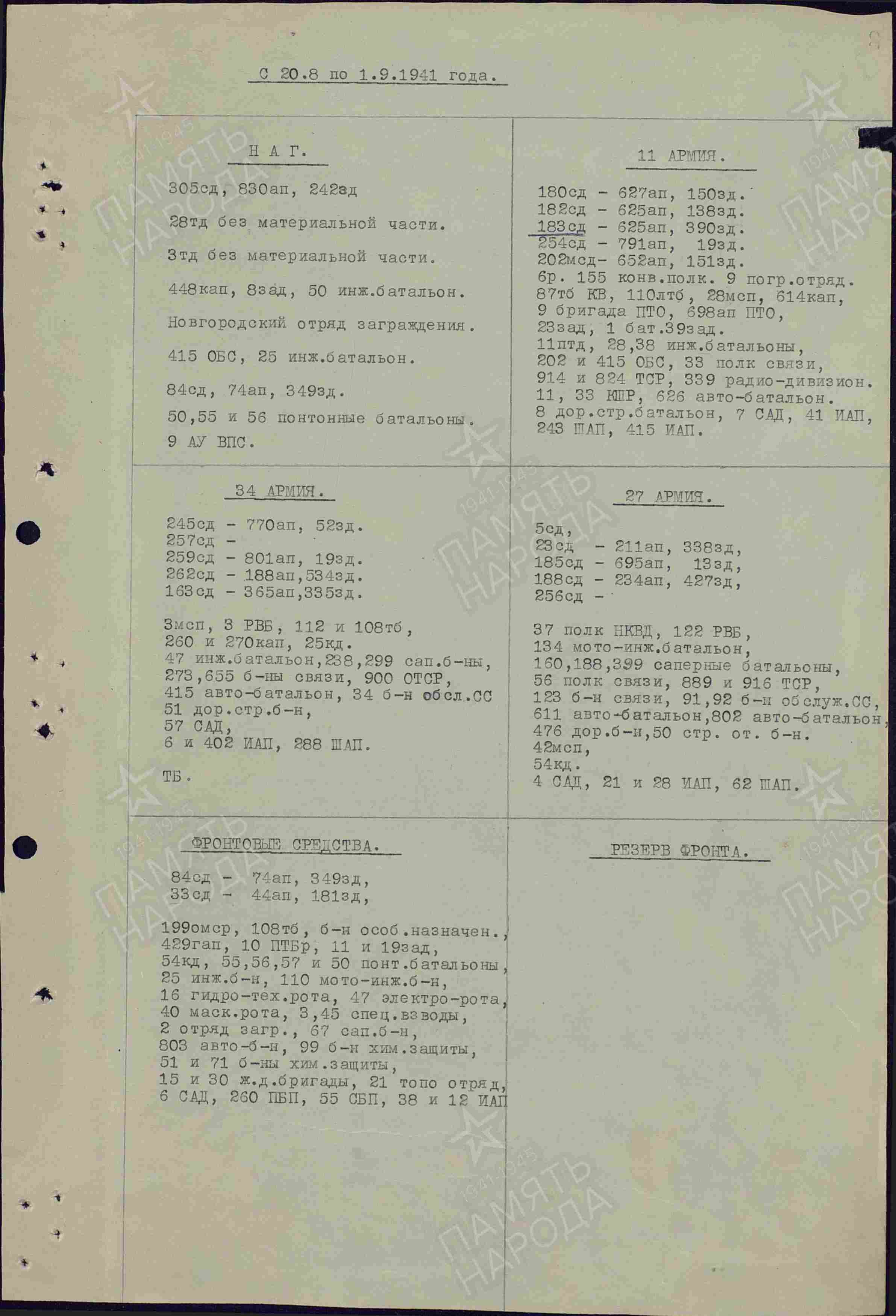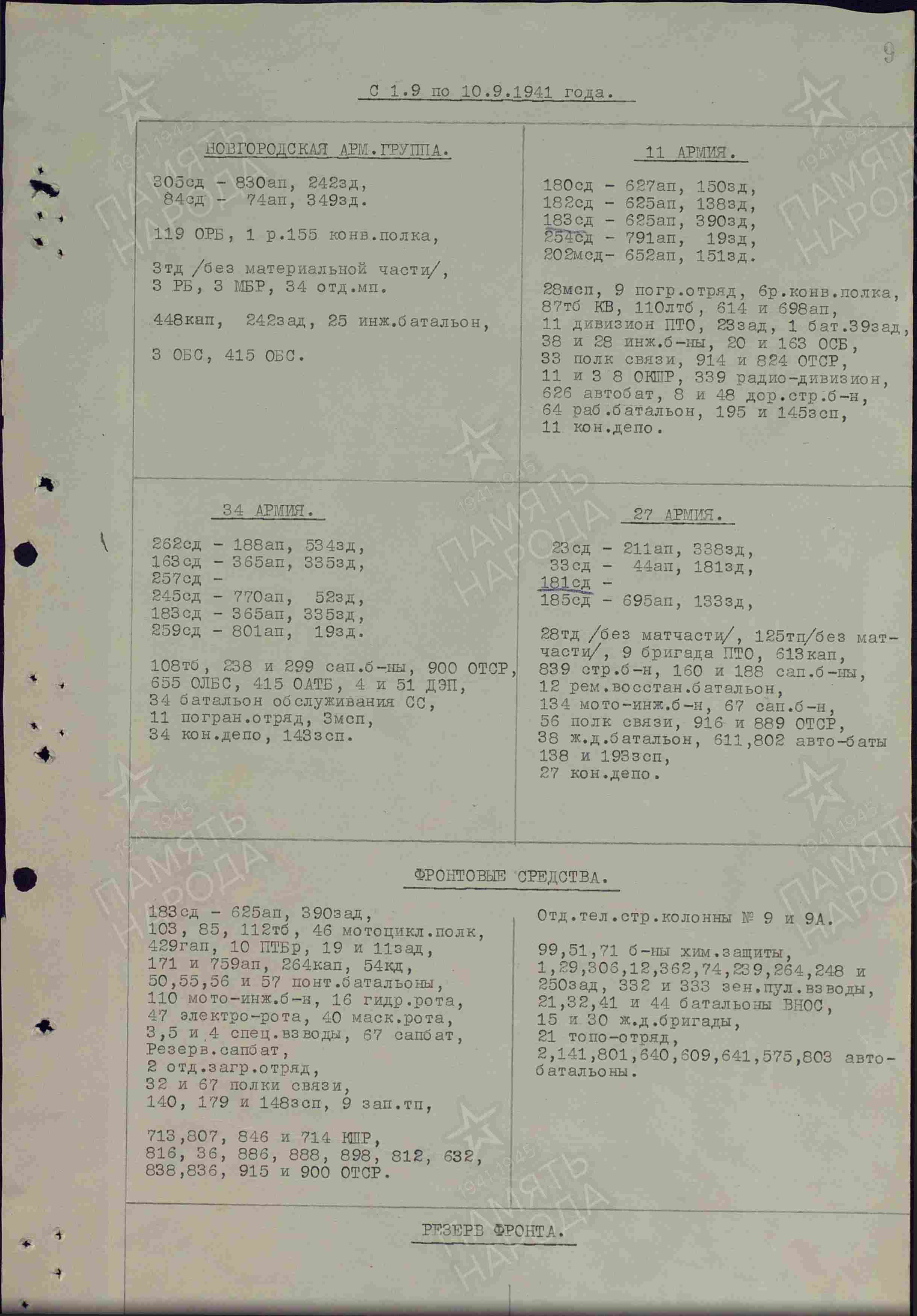 Имеется список частей учувствовавший в боевых действиях на СЗФ в период с 20.08.1941 по 10.09.1941