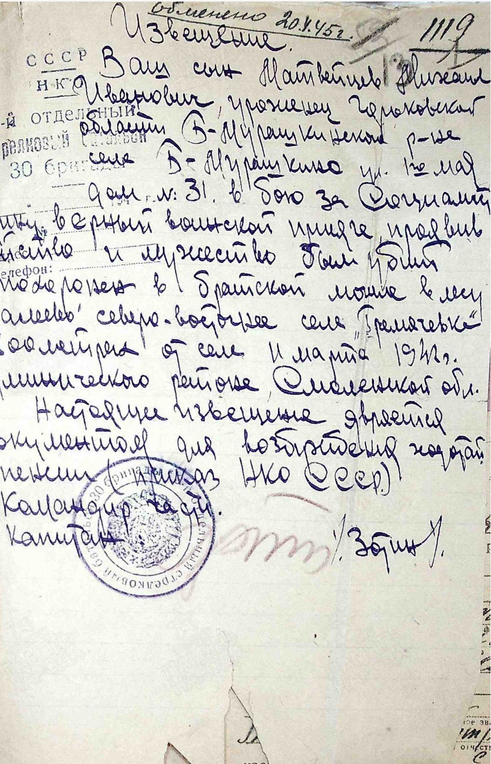 Извещение о гибели