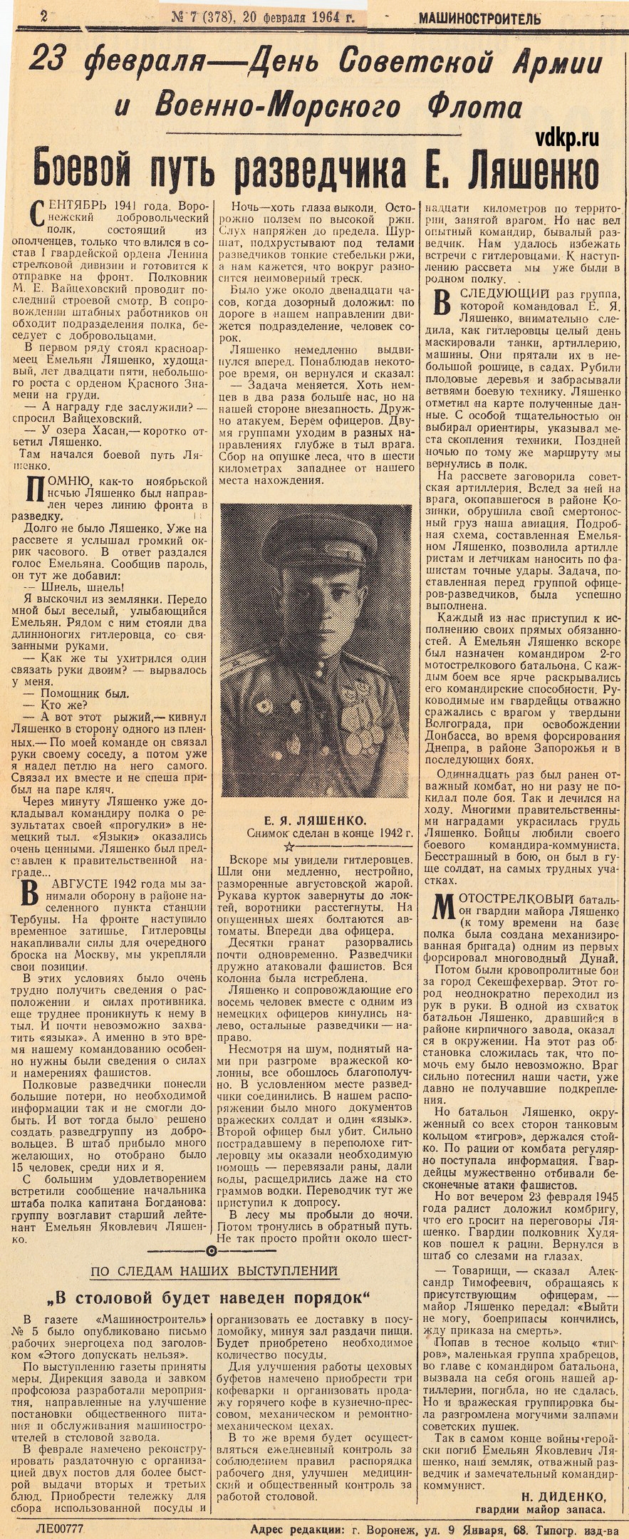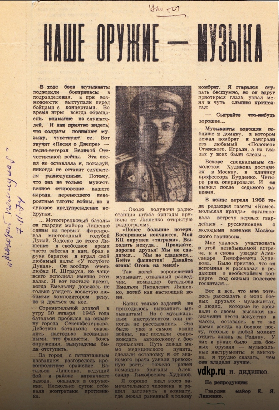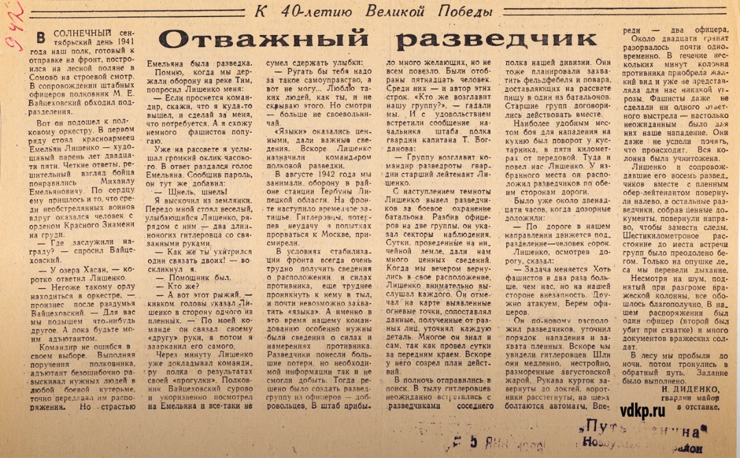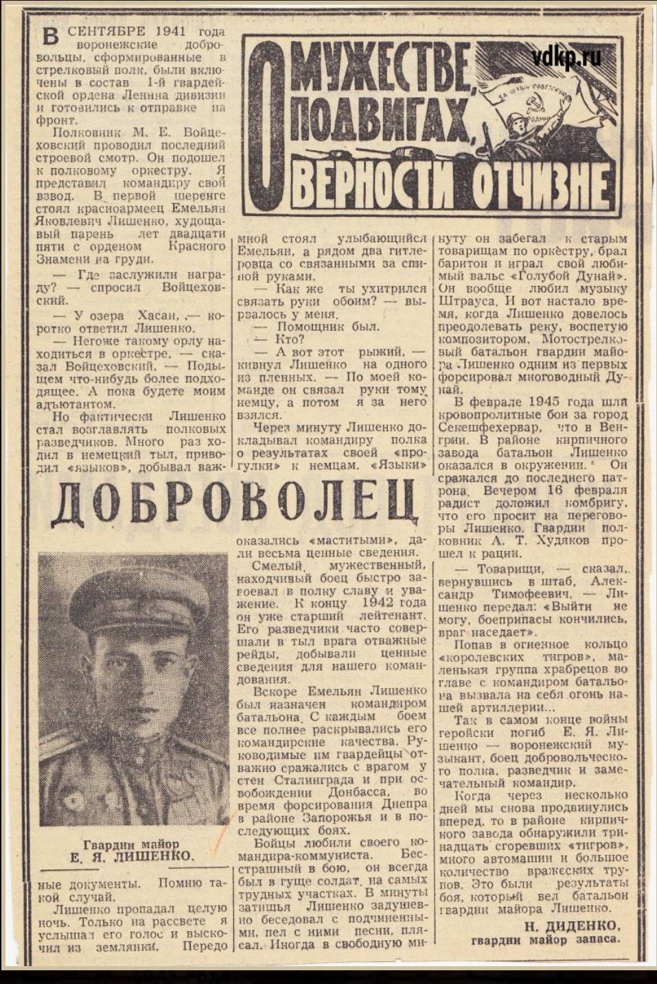 В них рассказывается о гвардии майоре Емельяне Лишенко, его геройской смерти от рук фашистов.