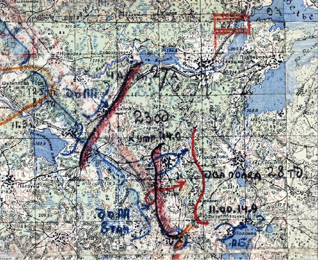 Слева соседняя 28-я танковая дивизия была окружена противником и шесть дней с боями выходила из окружения, после чего ей было приказано занять оборонительный рубеж между озерами Велье и Селигер.