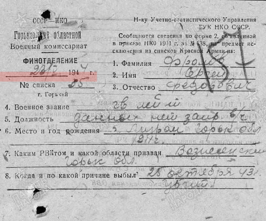 [Ушел на фронт защищать Родину с должности директора Вознесенской средней школы Горьковской области (ссылка, откуда ниже информация):