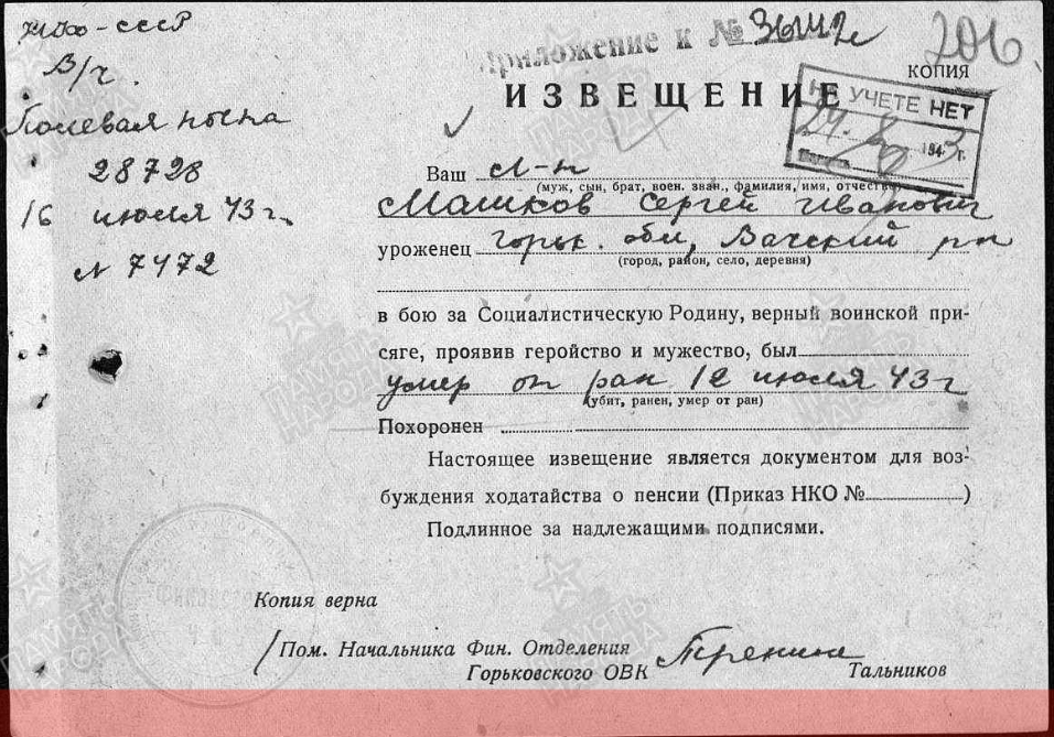 „В боях на Украине погибли бывшие директора С. Мошков, С. Фролов, пал в бою П. Гришин, не вернулись с фронта А. Вялов, В. Овчинников, А. Карманов. Неизвестны судьбы Сычева А.В.(Ссылка ), Львова А.А., Тюганова М.С., Кузина В.М., Шабашова И.Я.