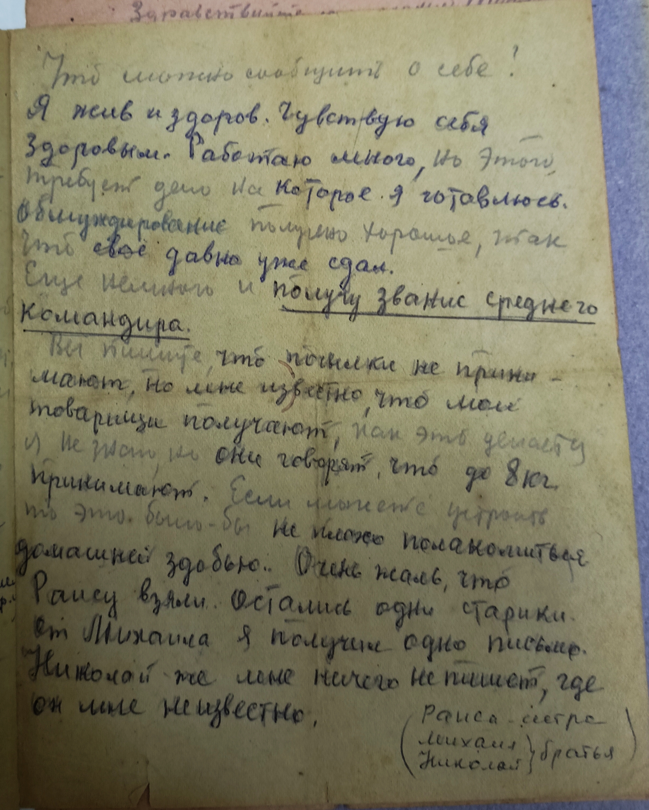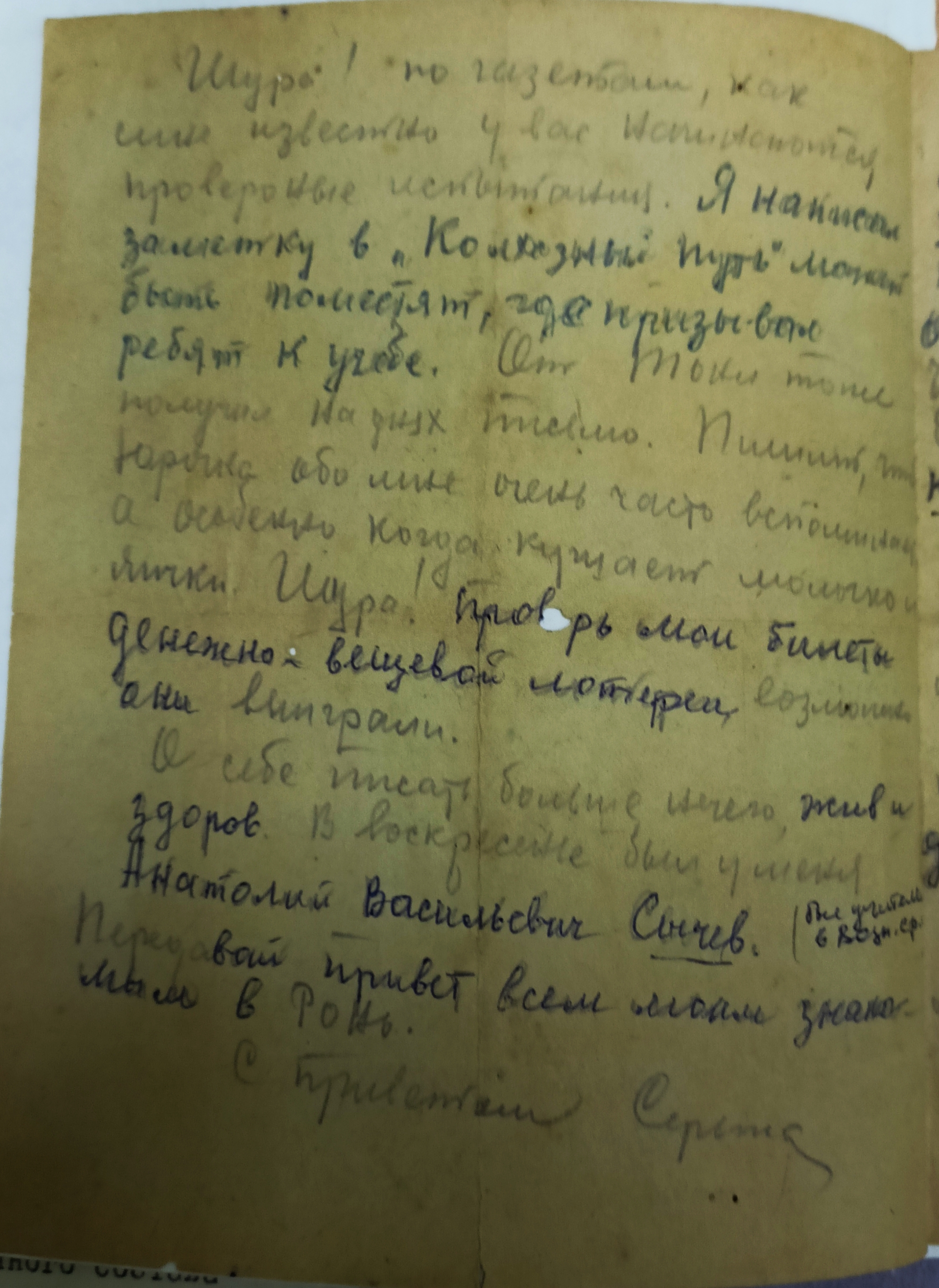 Он, видимо писал коллегам письма, так как люди вспоминали, что Сергей Иванович встретил в офицерской школе А. Сычева.