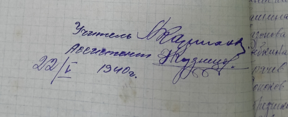 Его роспись под экзаменакционной ведомостью от 22 мая 1940 г. (из Вознесенского муниципального архива Нижегородской обл.)