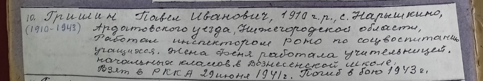 Видимо, этот Павел Иванович до войны работал инспектором РОНО Вознесенского р-на Горьковской области.