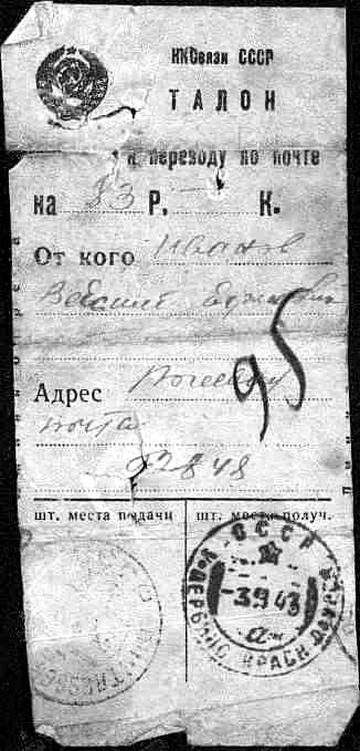 На руках у родственников два документа, извещение от в/ч 02848 о перводе 63 рублей "Погибшего за родину Ермоловича Филимона Григорьевича" и подтверждения старшины части где служил Ермолович. Видимо ответ после запроса в часть.