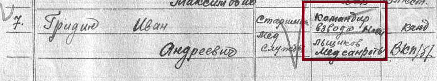 Воинское звание: старшина мед. сл.