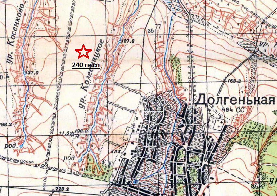Первичное место захоронения: Украинская ССР, Харьковская обл., Изюмский р-н, с. Долгенькое, северо-западнее, 1 км