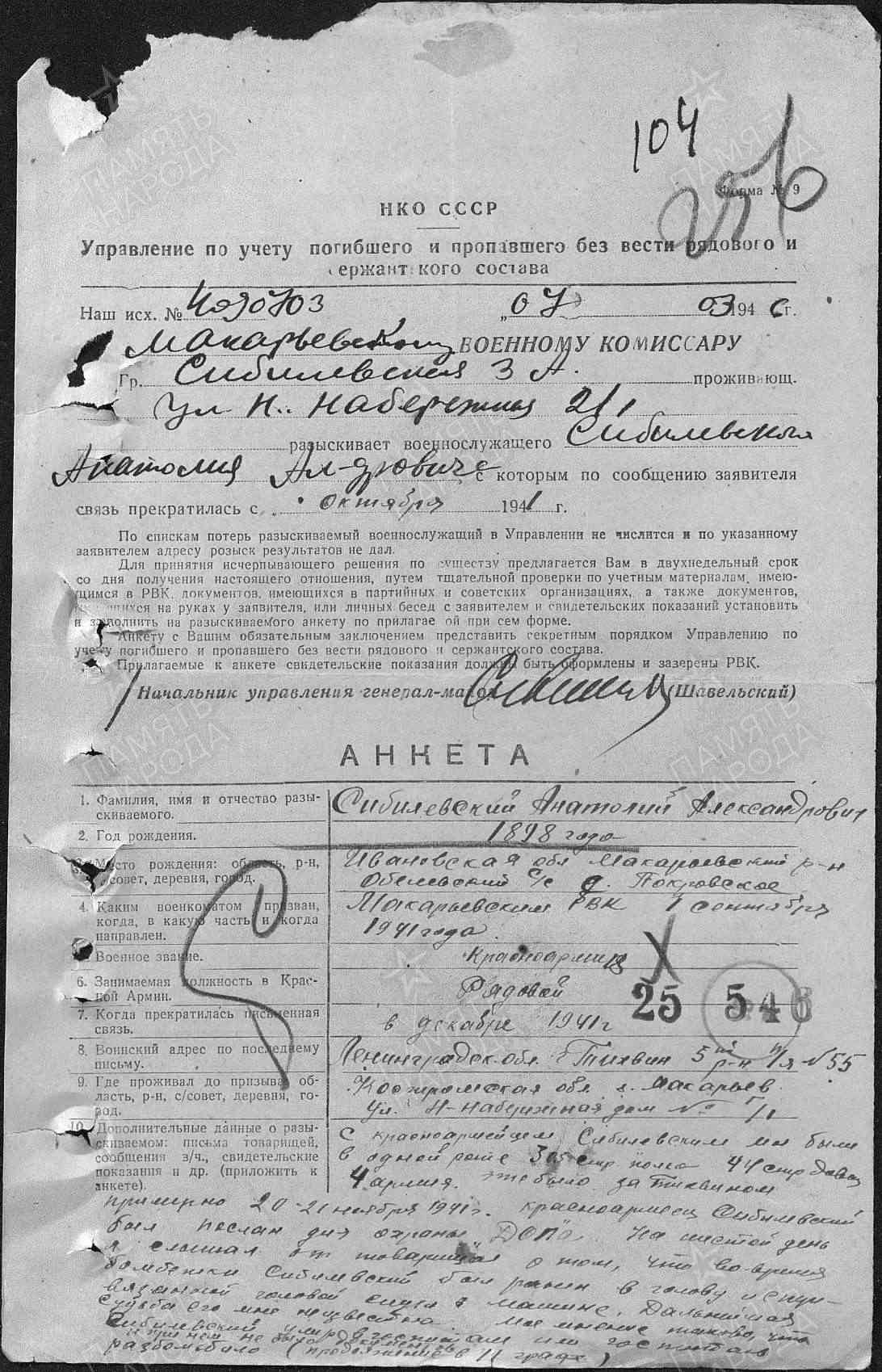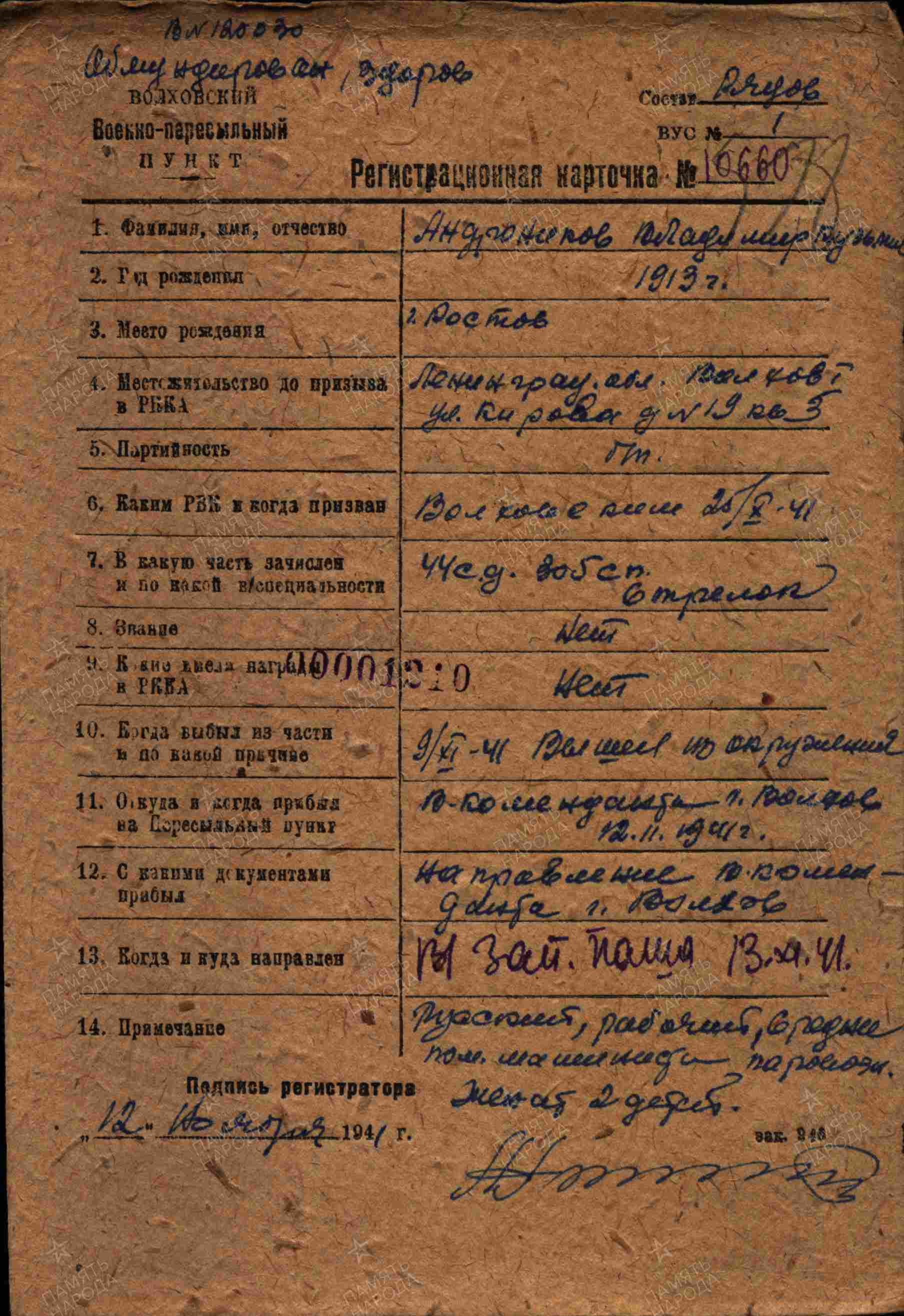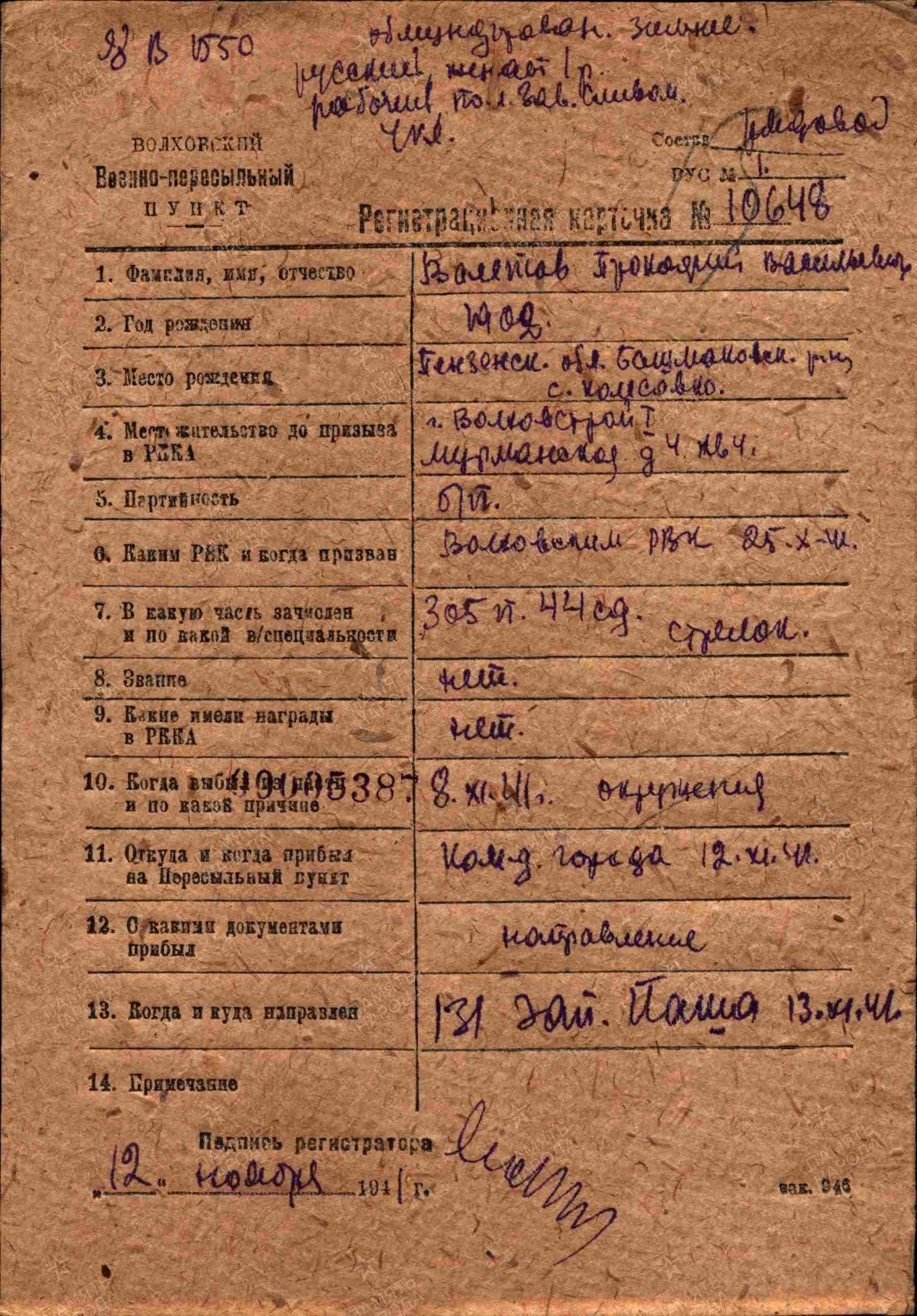 Дата призыва: Василеостровский РВК, Ленинградская обл., Василеостровский р-н