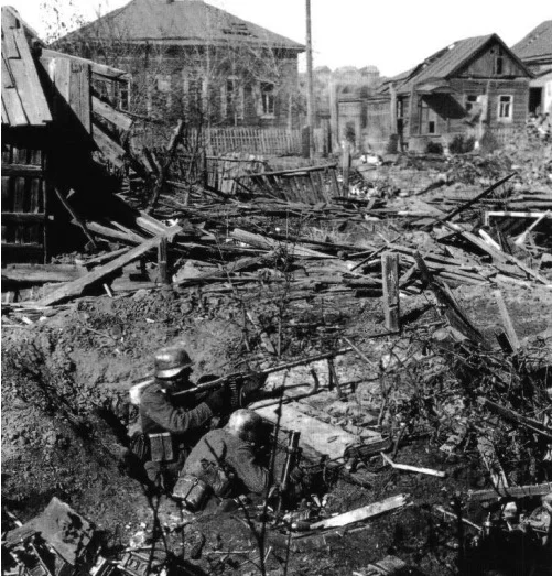 Немецкие солдаты в Спартановке, на подступах к Сталинграду.