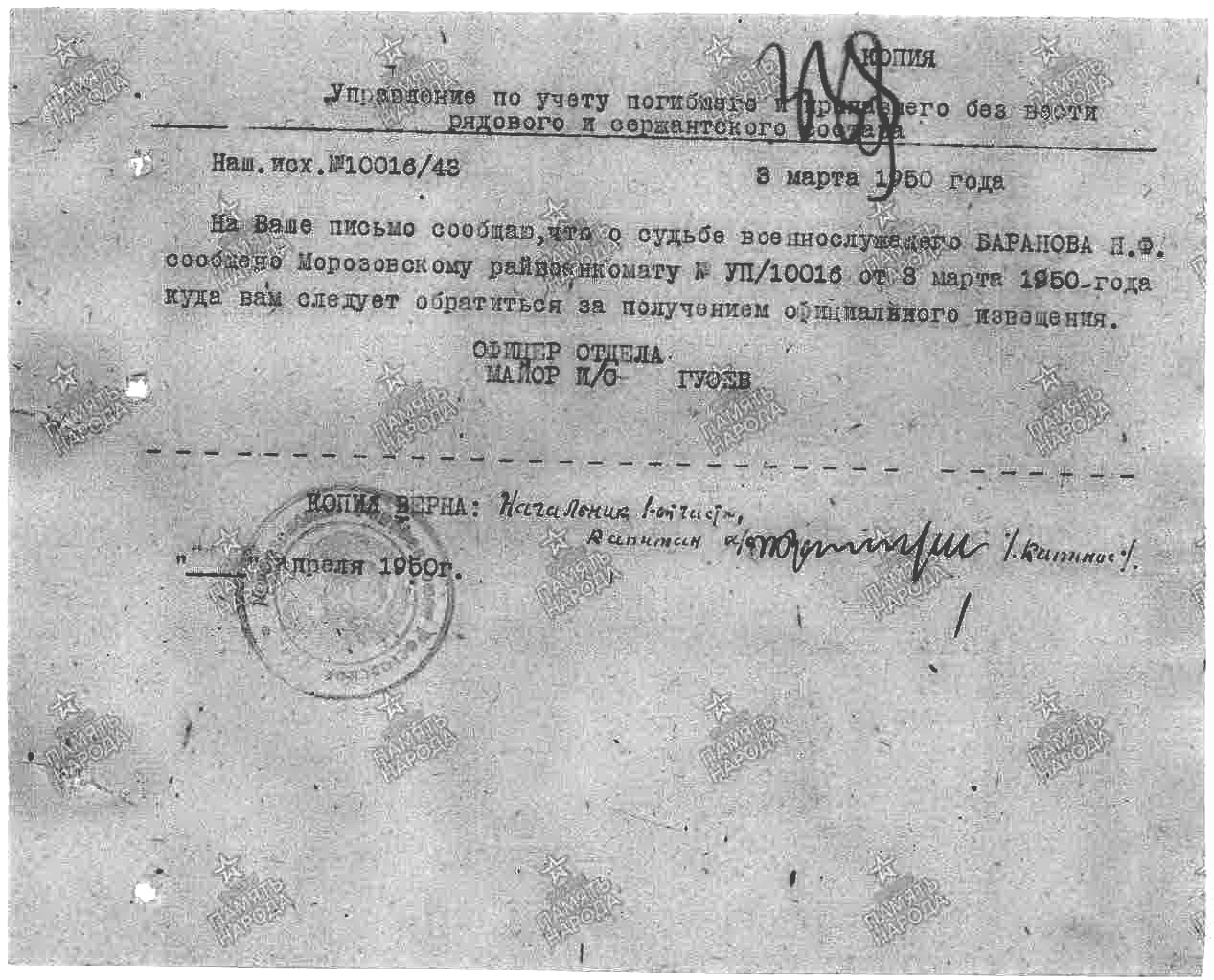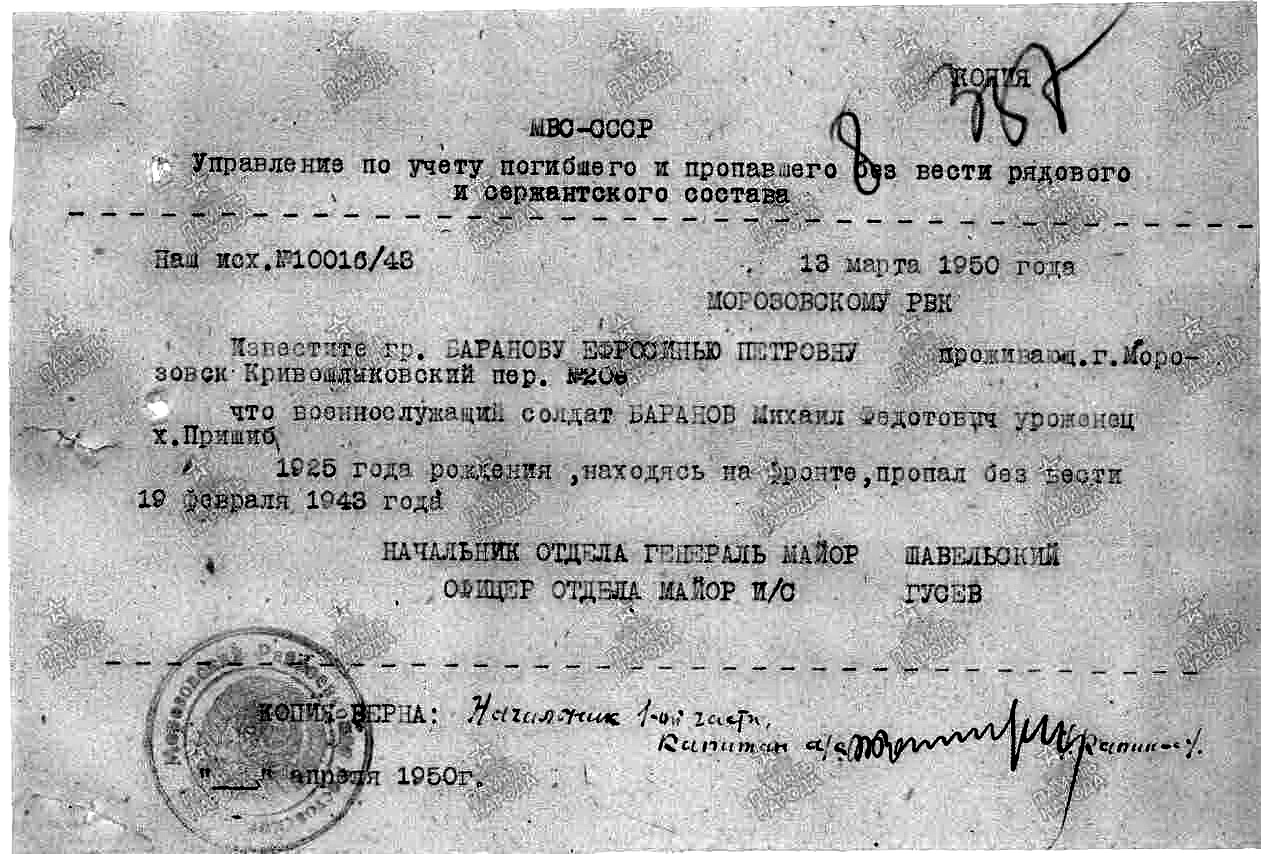 Первичное место захоронения: Украинская ССР, Ворошиловградская обл., Ивановский р-н, ст. Штеровка, восточнее, с/з Первомайский