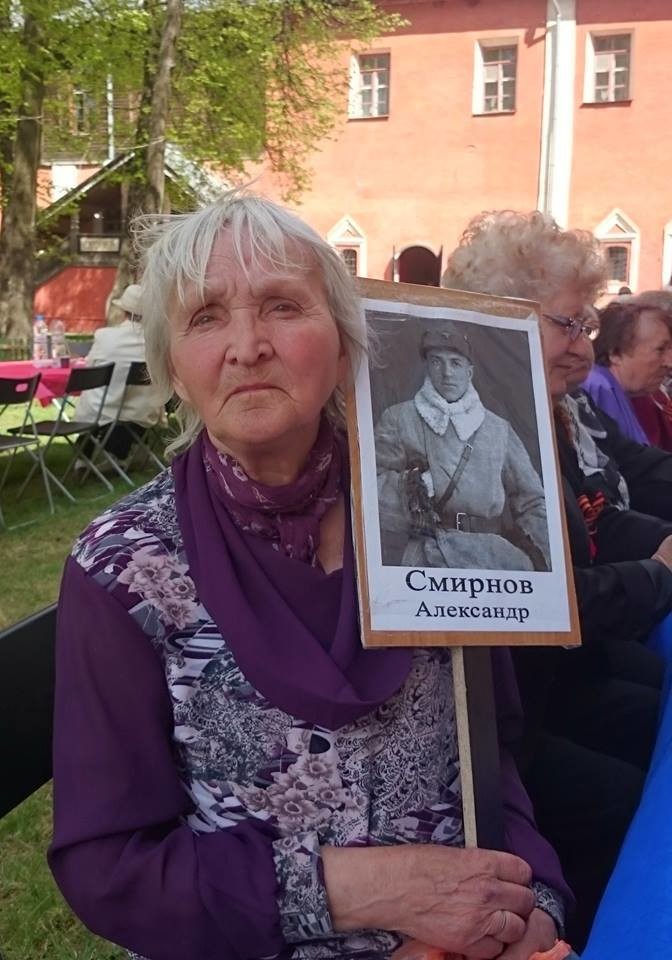 Фото женщины, несшей штендер с фото Смирнова Александра делала сама Светлана Евгеньевна 9 мая 2015 г. на шествии Бессмертный полк в Ростове Великом.