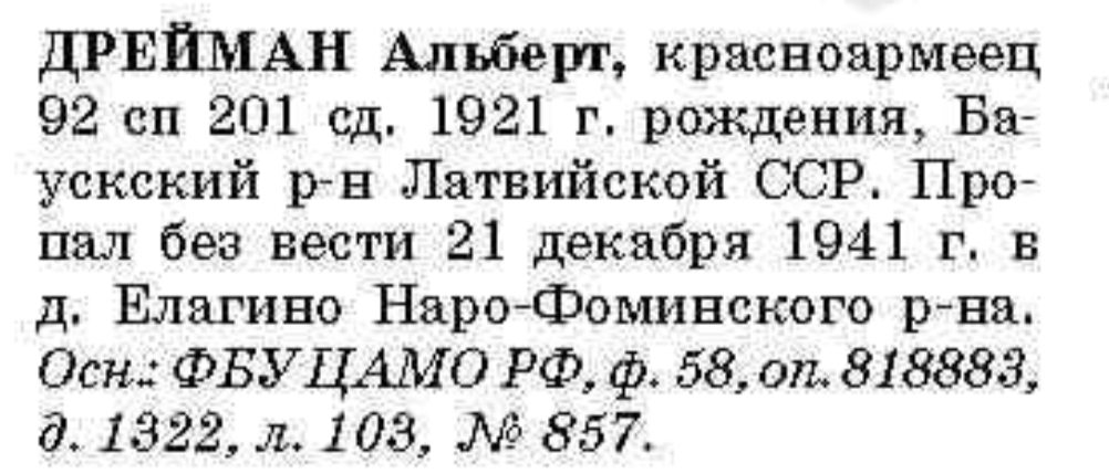 Донесение о безвозвратных потерях — https://m.pamyat-naroda.ru/heroes/person-hero107284822?last_name=Дрейман&first_name=Альберт&loss_type=3&page=1