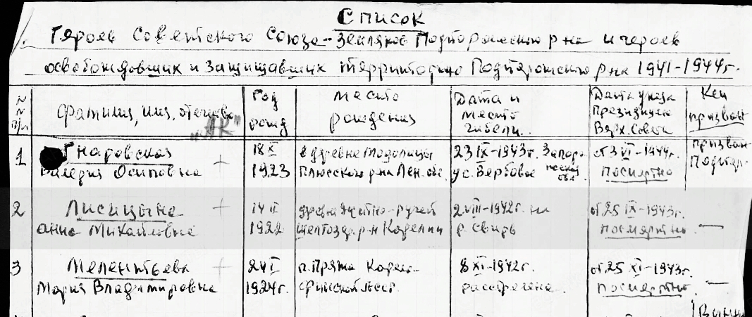Женщины, ставшие Героями СССР Подпорожского р-на Ленинградской области в 18-19 лет