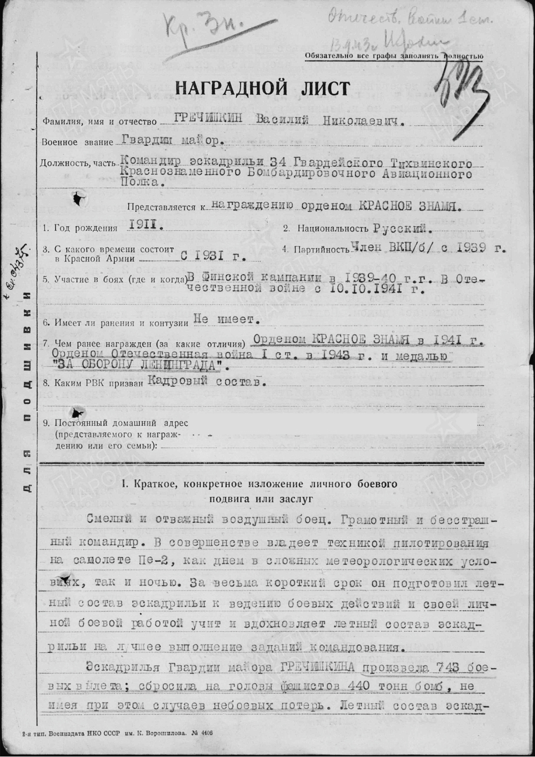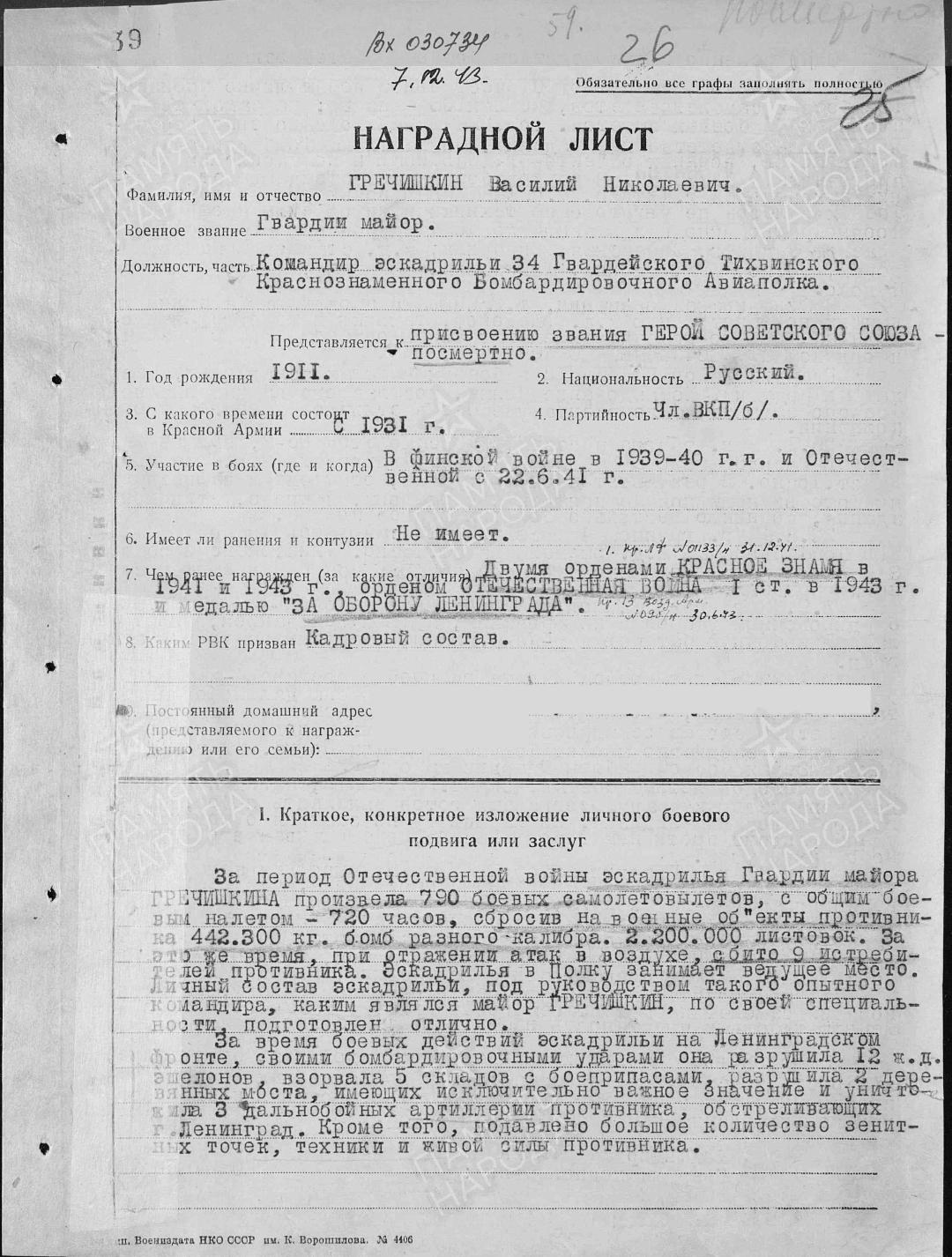 Из книги «Твои Герои, Ленинград. Гречишкин».