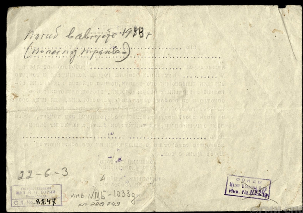В августе 1943-го, уже после снятия блокады Ленинграда, мы даже не знаем как такое могло случиться.. но.. случилось.. нашли от моего деда одни куски.. - разорвало, размесило, говорили, возможно трамваем..