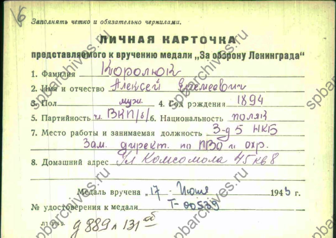 В июне 1943-го мои бабушка Михалина Викентьевна и дед Алексей Еремеевич Королюки были награждены медалями «За Оборону Ленинграда»: