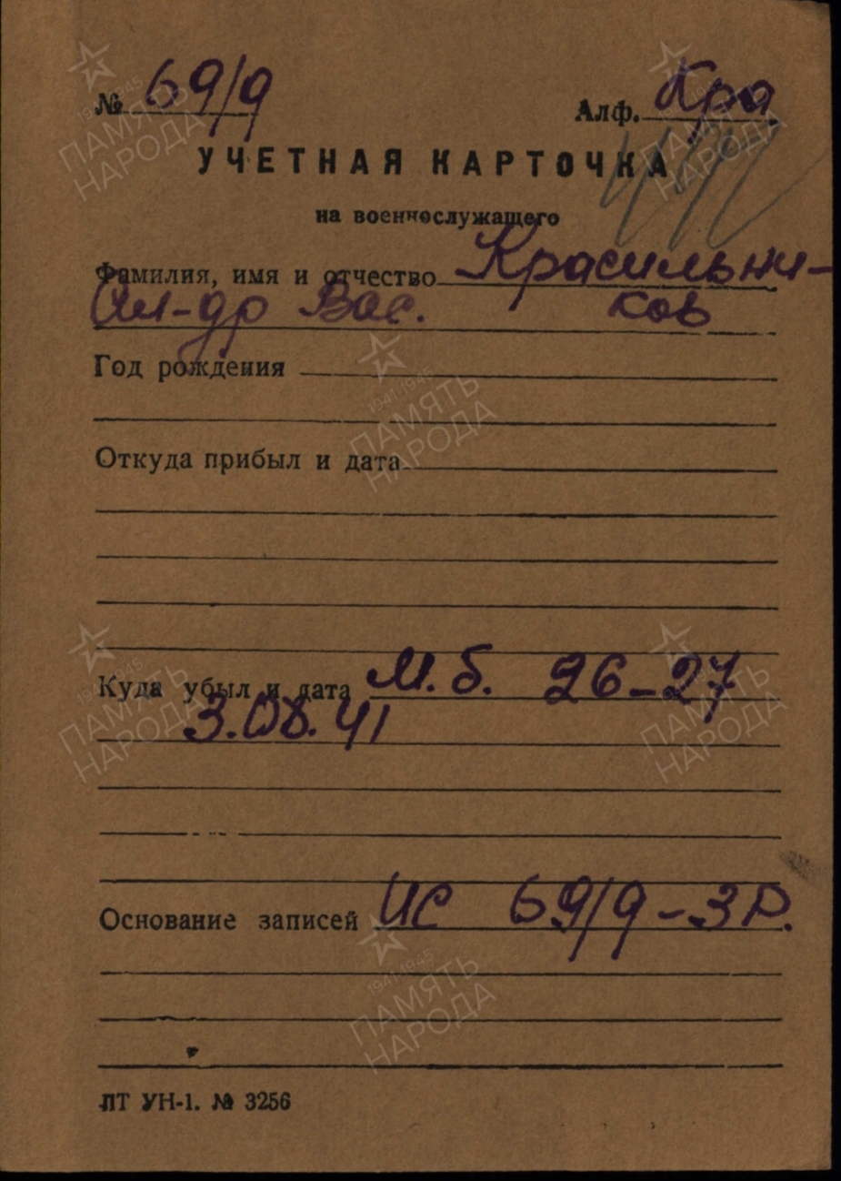 Выше ссылка на рассказ о Саше - Красильникове Адександре Владимировиче 1922 г.р., уроженце Б-Мурашкино Горьковской обл., призванного 14.10.1940 г. Б-Мурашкинским РВК Горьковской обл. в 72-й погран.отряд в Карелию и погибшего 25.03.1943 г. в Орловской тогда области (сейчас - Брянская), у д. Василёк Комаричского р-на.