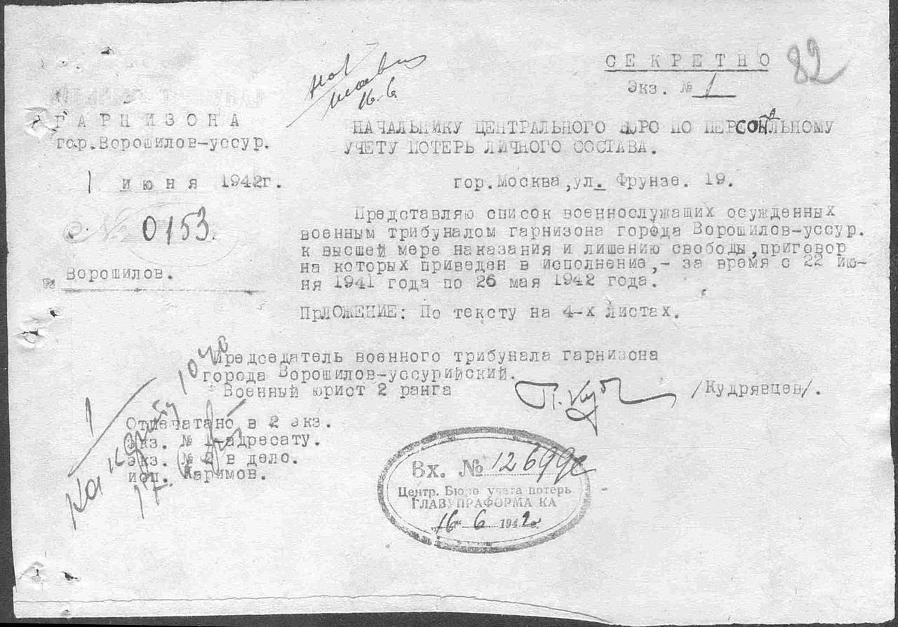 Дата призыва: __.__.1941 Михайловский РВК, Амурская обл., Михайловский р-н