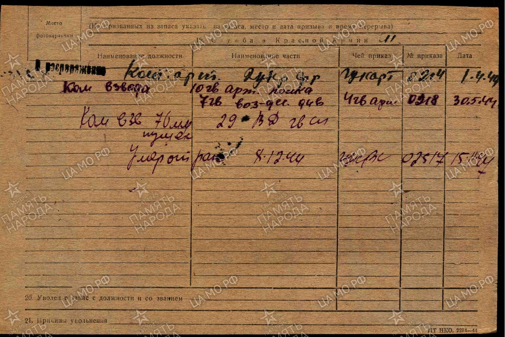 Дата поступления на службу: __.__.1941