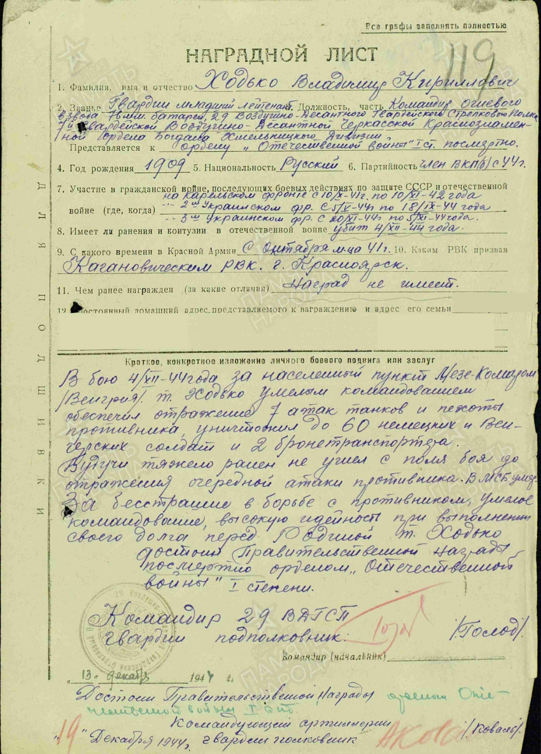 Дата подвига: 04.12.1944