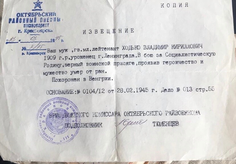 Мой прадедушка умер защищая Родину , похоронен Венгрии южнее Будахента 100 км ! Был 3 раза ранен , об этом пишет в письмах своей жене ! Письма с фронта все сохранены там он описывает фашистов как идёт война и так далее ! Был во многих городах на войне ! 20 .12.44 от командира части 77о20 -Л пришла похоронка что 4.12.44 за населённый пункт Мезе-Комаром( Венгрия )Дедушка умер от тяжёлой раны в голову ! Описывается что он был ранен , но не покинул поле боя до последнего ! Документ отправлен выще ( документ отправила мне учительница в Школе ) ! Я не могу никак найти где именно он похоронен ! Медалей награды прадедушки жене не передали его !