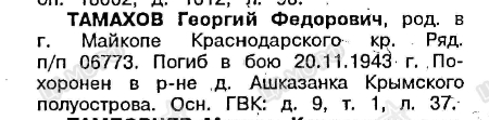 Первичное место захоронения: Крымская АССР, Красно-Перекопский р-н, с. Ашкадан, в районе, Крымский полуостров
