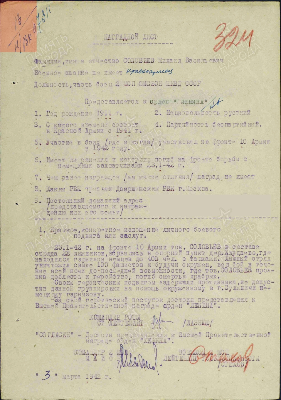 Воинская часть: 2 мсп ОМСБОН НКВД ЗапФ
