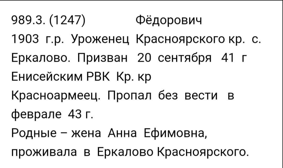 1903 г р. Уроженец Красноярского кр. с.