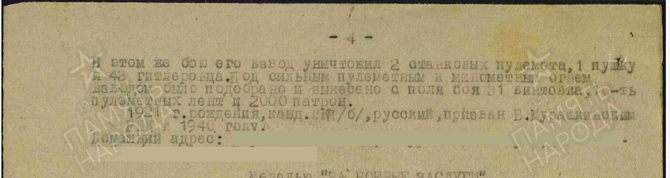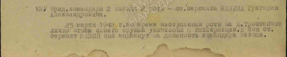 Интересно то, что его наградили за бой наступление на д. Тростенчик от 25.03.1943 г., в котором погиб мой дядя Александр Красильников.