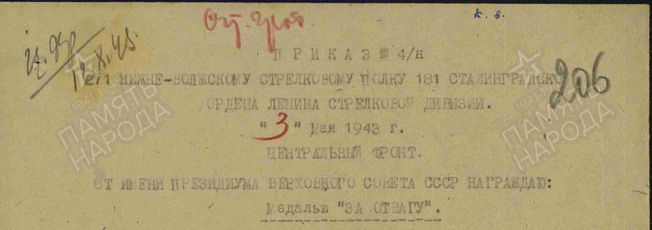 Из Приказа о Награждении по 271-му Нижне-Волжскому стрелковому полку