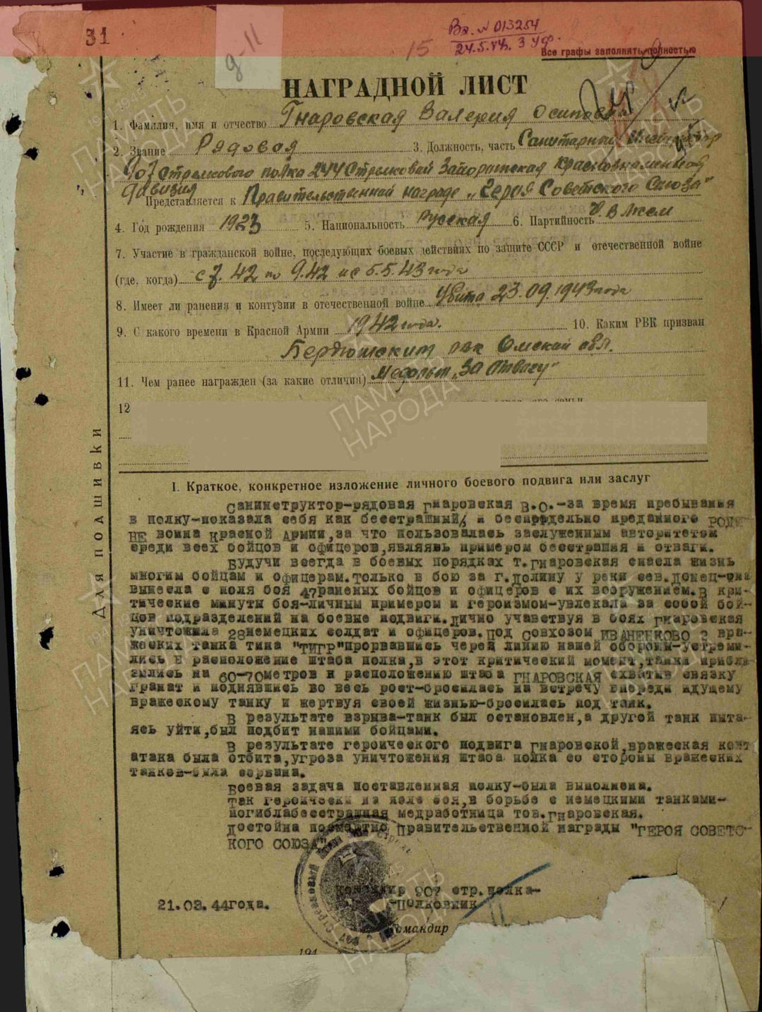 Герой Советского Союза (Орден Ленина и медаль «Золотая звезда»), от 03.06.1944 посмертно; это ссылка